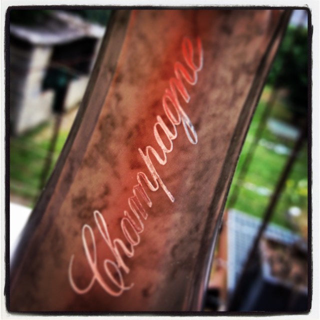 Jeudi 11 # Jour 254 : Champagne pour fêter notre premier dîner chez copain S. que l’on connait depuis si longtemps ! Soirée très sympa, repas simple et excellent et musique à volonté ! Merci, on reviendra !