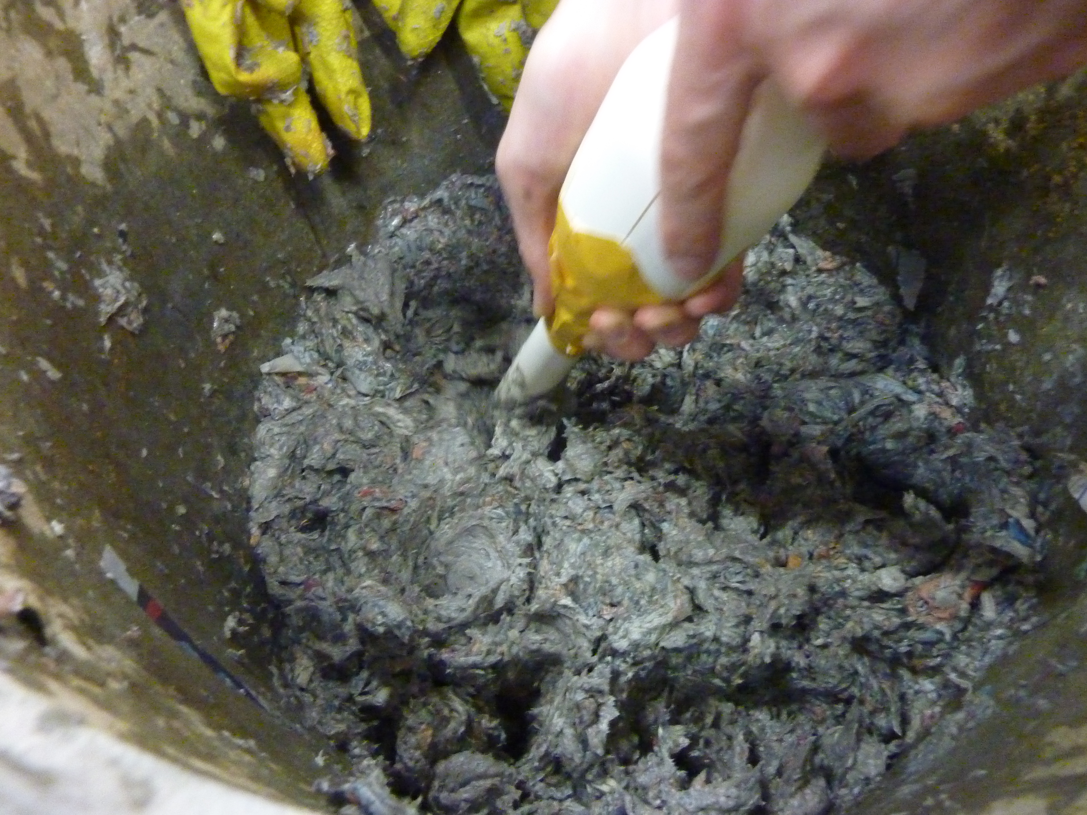 Découpage de papier et première bassine de papier mâché ! Il va en falloir beaucoup plus !