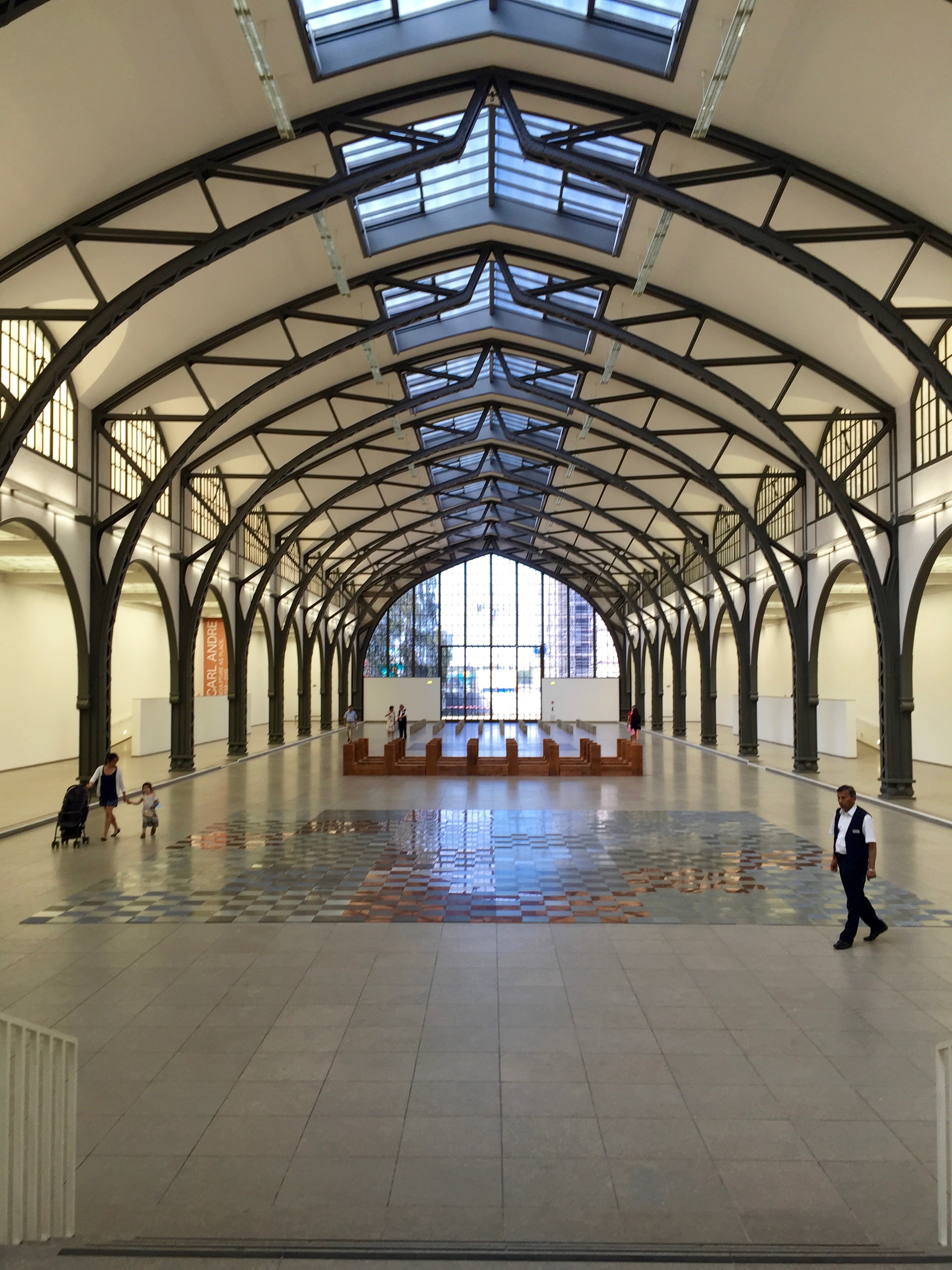 L’entrepôt attenant de 300 m de long est en ce moment dédié à l’oeuvre de Carl Andre, peintre et sculpteur minimaliste américain.