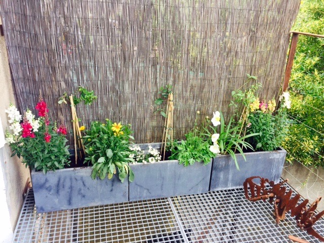 J’ai quand même planté quelques fleurs dans mes jardinières de terrasse 😉 J’espère qu’elles vont se plaire et bien grandir ! Pour le moment je n’ai pas eu trop à les arroser, le ciel s’en charge… Mais je surveille attentivement 😉