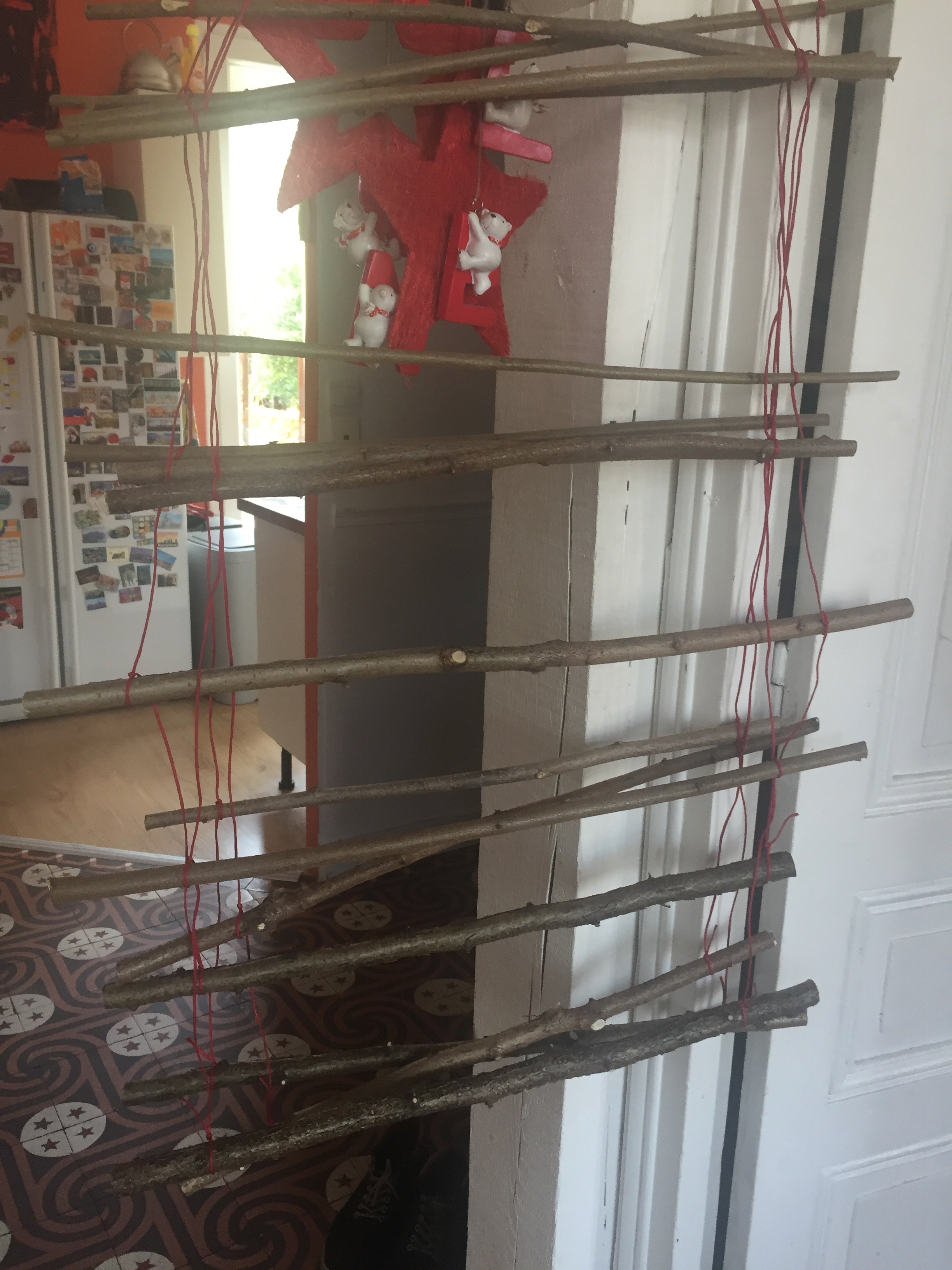 Pour cette année, j’ai fabriqué des échelles à 4 barres (merci mon noisetier) reliées entre elle par une ficelle renforcée.