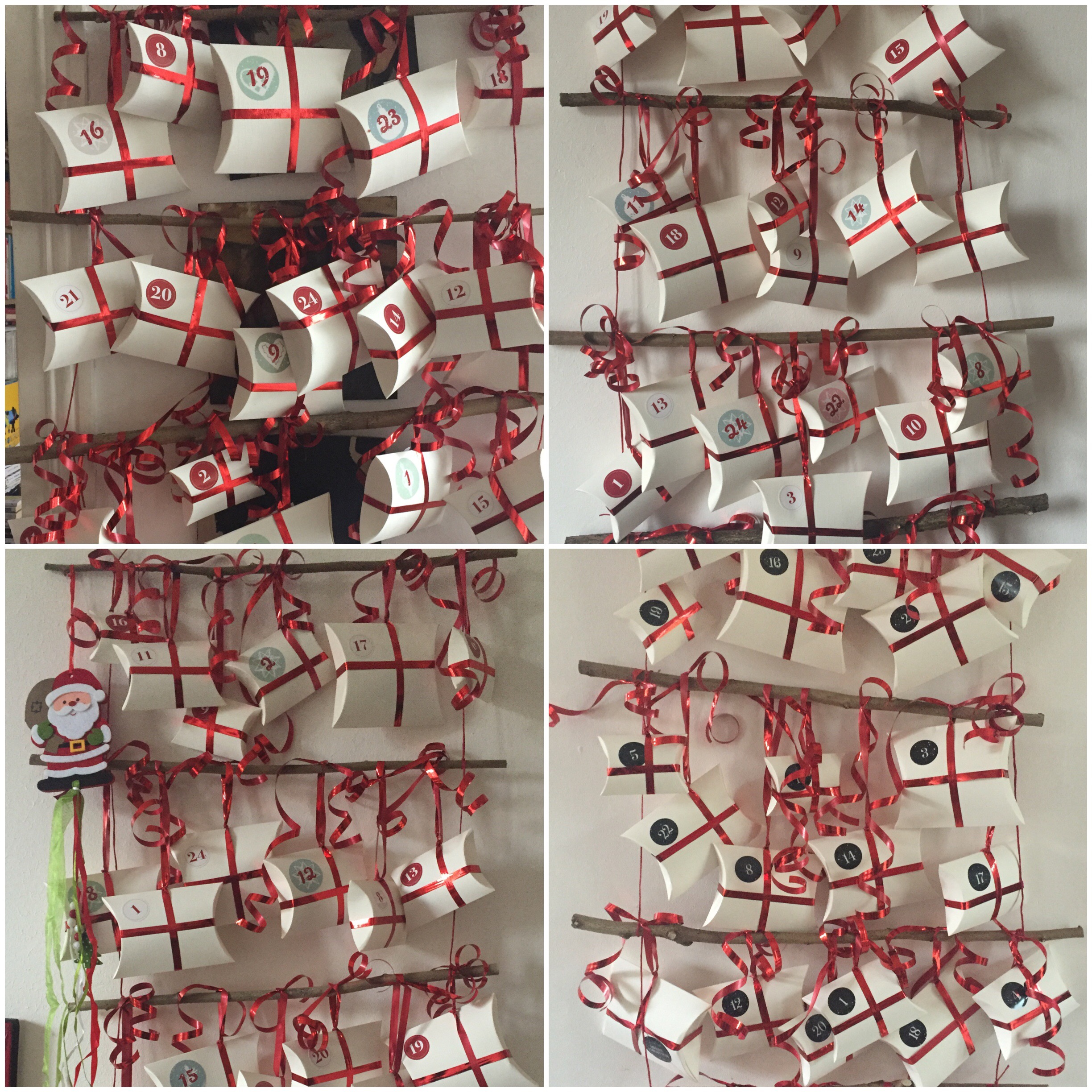 […] Calendrier 2017, bricolage cette année là avec des branches de mon noisetier, des petits emballages cartons et du ruban Bolduc. C’était un peu tempête pour tenir l’équilibre 😉 Tous les jours ils ont un ou deux chocolats différents, effet surprise. […]