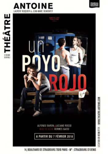 « Deux êtres se cherchent, se jaugent, se provoquent, s’affrontent, se désirent, se rejettent, s’unissent dans les vestiaires d’une salle de sport. « Un Poyo Rojo », c’est une expérience sensorielle étonnante : compétition sportive, combat de coqs, danse, théâtre, acrobatie, percussion, clown… ? Un peu tout ça à la fois ! A partir du mouvement, de l’action, et sans un mot prononcé, ils proposent, avec humour et une énergie intense, d’expérimenter les différentes façons d’entrer en contact et de créer une relation. Laissant aux spectateurs toute latitude d’interprétation… »