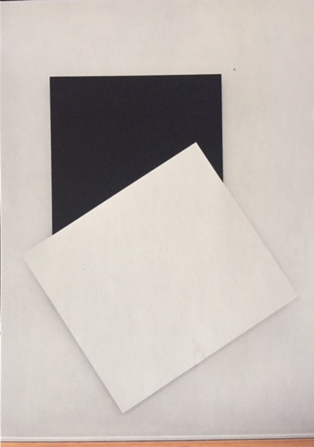 Cette fois je ne sais pas… Bien sûr j’ai pensé à Malevitch, comme si quelqu’un avait posé une toile inutilisée sur « carré noir sur fond blanc »… ou à un autre représentant de l’abstraction géometrique…. mais non, je n’ai pas trouvé de toile qui ressemble à celle-ci.