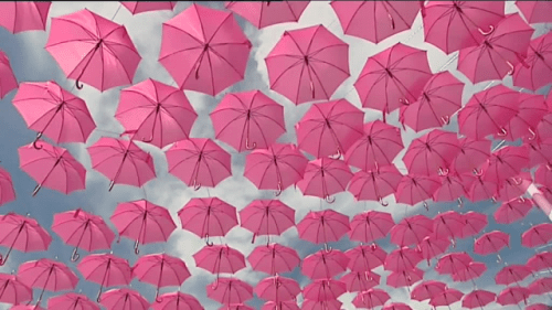 Notre ville a installé les parapluies elle aussi. J’ai plusieurs amies en traitement en ce moment, et deux qui ont fini cet été. Ah, que de personnes touchées… Je dois aller faire mon contrôle sous peu. Bises