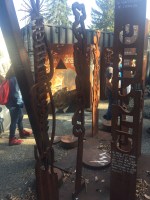 Il y a beaucoup d’oeuvres en métal et il y en a des superbes. Il y a un hélico, un bateau, un avion, des voitures échoués, un bunker, des têtes de mort géantes, du matériel informatique d’un autre temps. Et de nombreux portraits peints avec des citations ou des pensées….