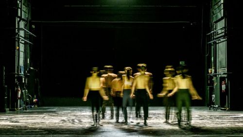 Le ballet commence dans le noir avec juste un trait de lumière en fond de scène et on devine que les danseurs courent partout.