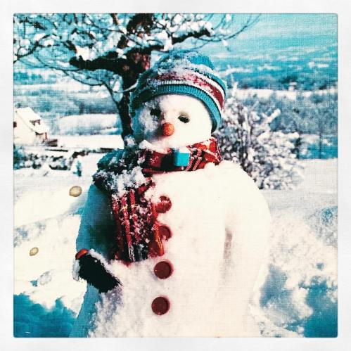 Je n’ai pas encore envoyé de cartes de fin d’année, c’est un peu tôt. J’ai retrouvé cette jolie carte de bonhomme de neige dans mes archives.