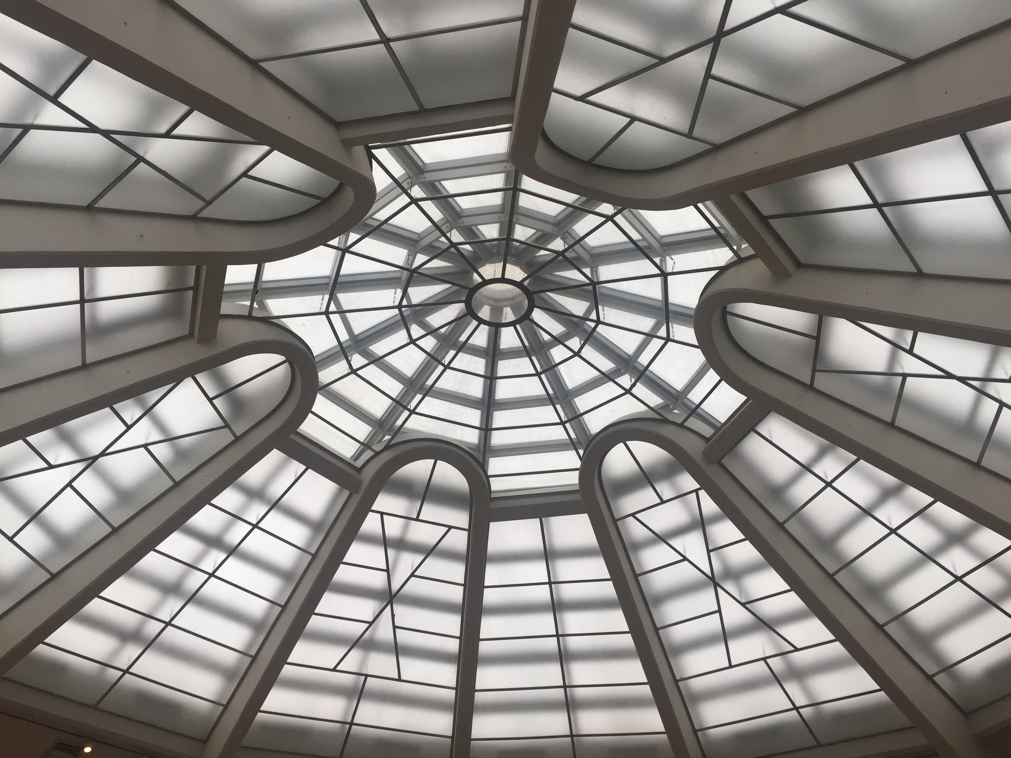 La galerie monte en pente douce comme une spirale jusqu’à la coupole centrale.