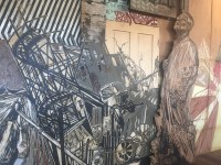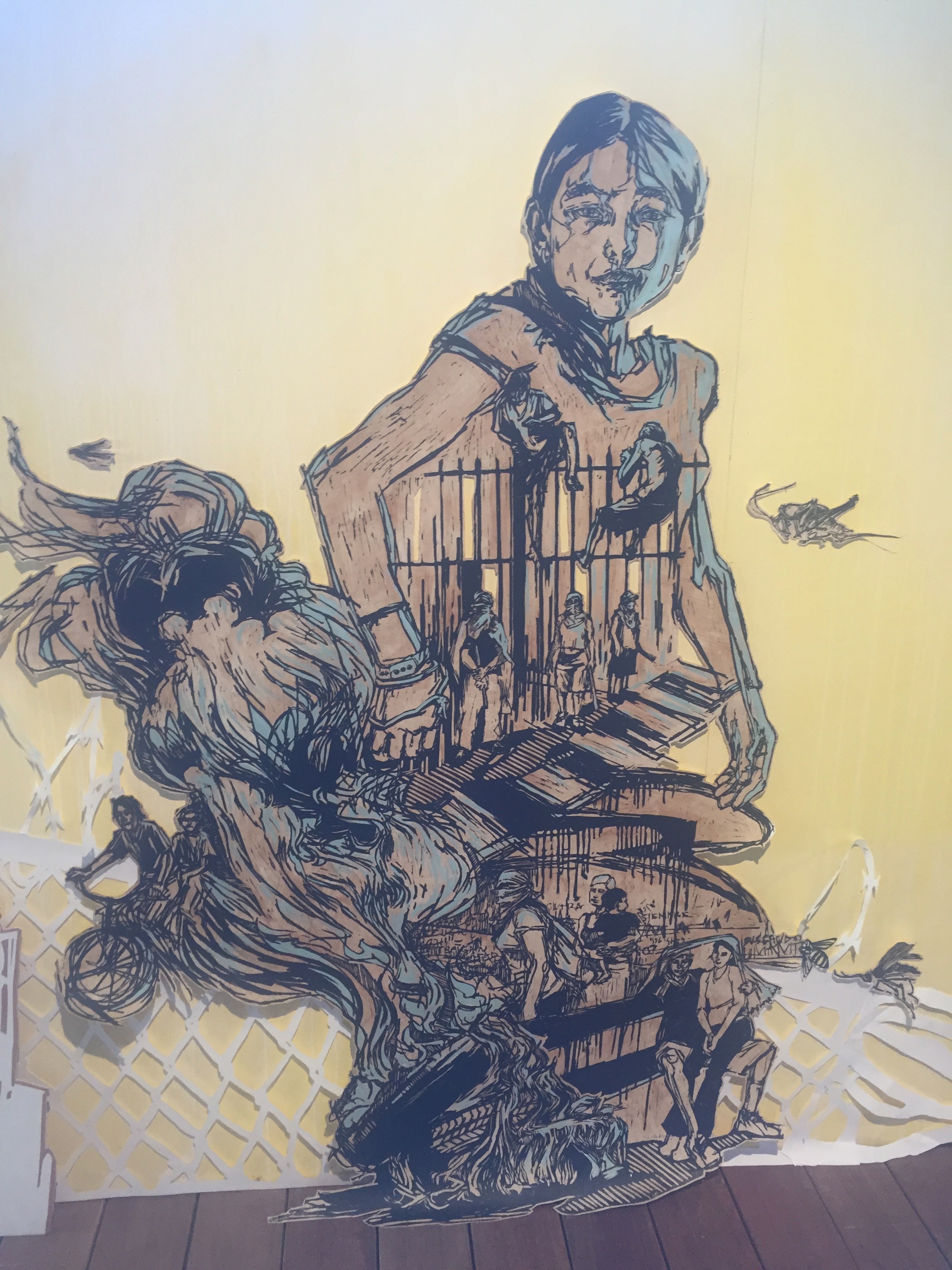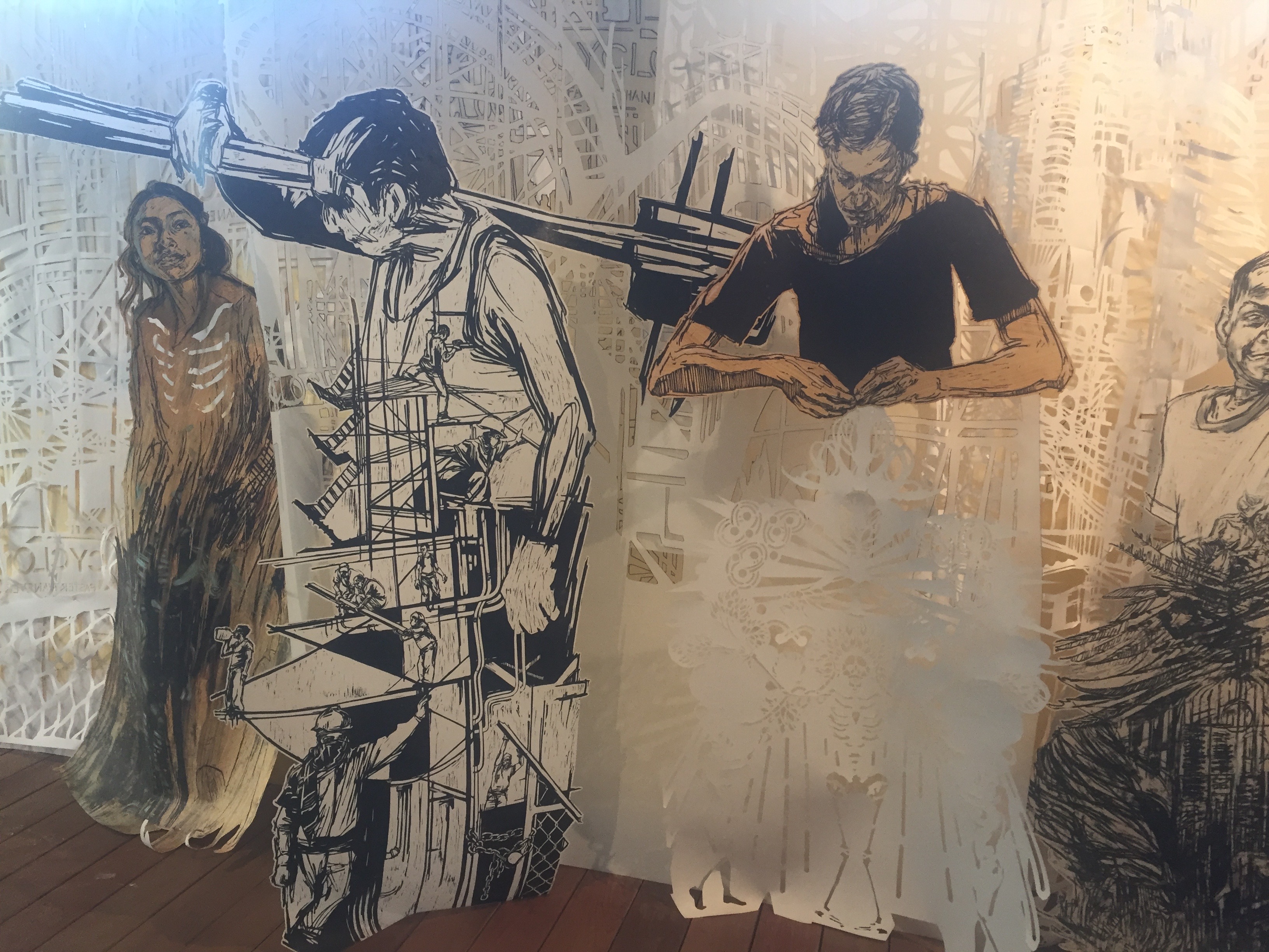 En dessous une expo Time Capsule de l’artiste Swoon. C’est un parcours chronologique à travers l’œuvre de l’artiste, retraçant son évolution technique. C’est vraiment super, elle occupe tout l’espace, travaille de nombreux matériaux, les dessins sont superbes. Une belle découverte. Elle est américaine et a fait des collages de portrait dès 1999 dans Brooklyn.
