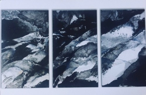 Paule Riché en haut : Paysages failles et ici Triptyque Terres noires