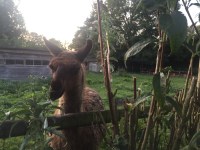 Autour de nous (enfermés quand même) il y a des wallabies, des paons, des faisans, des poules rigolotes… , et Serge le Lama trop gentil.