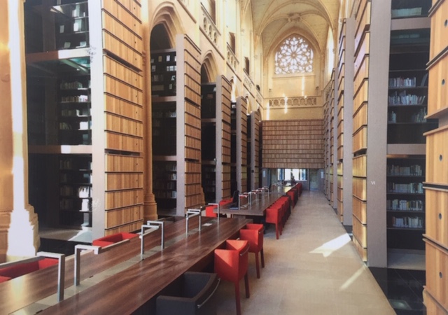 Il s’agit donc comme a trouvé Nanou de l’Abbatiale de l’abbaye d’Ardenne près de Caen et de l’intérieur de la bibliothèque de l’IMEC.