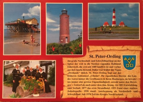 Sankt Peter-Ording, commune d’Allemagne située dans le land du Schleswig-Holstein, dans l’arrondissement de Frise-du-Nord (Nordfriesland), dans l’Amt Eiderstedt, est une station balnéaire importante et une station thermale. Selon le nombre de nuitées enregistrées à Sankt Peter-Ording, le plus important du Schleswig-Holstein, la commune est la plus grande station balnéaire d’Allemagne.