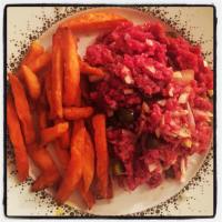 Mardi 31 # Jour 91 : Sortie pour les courses ! La sortie de la semaine ! Obligée de faire la queue, du coup ça prend du temps les courses. Récompense : Tartare de boeuf pour le dîner.