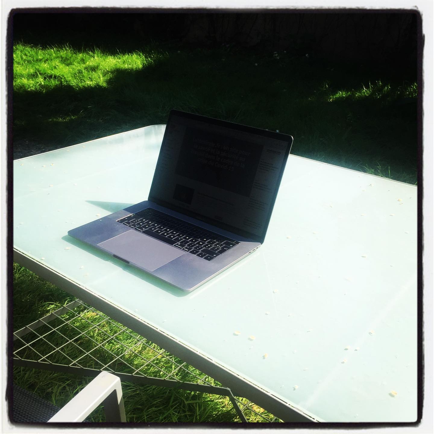 Mercredi 1er avril # Jour 92 : J’avais froid dans la maison alors j’ai travaillé dans le jardin même si il y a plein de reflets dans l’écran.