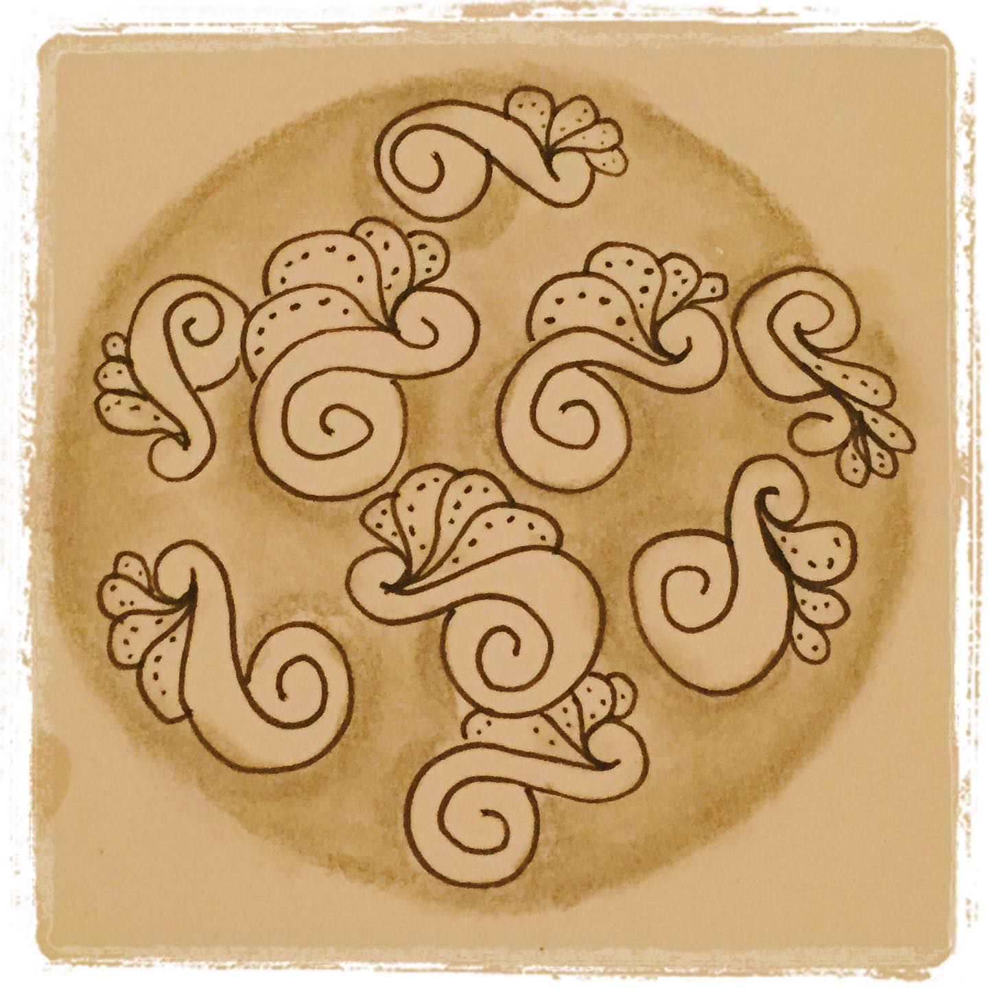 Je continue un motif de zentangle par jour jusqu’à la fin de mon carnet, ensuite j’essaierai de les combiner entre eux.
