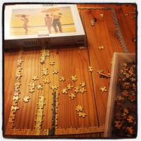 Mercredi 17 # Jour 48 : Nouveau puzzle pas facile, certaines pièces vont à plusieurs endroits… C’est bizarre ! J’avance bien, JL m’a aidé pour les personnages.