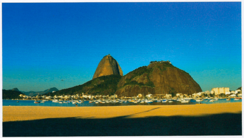 Il s’agit du mont du Pain de Sucre, ou simplement le Pain de Sucre (Pão de Açúcar en portugais), c’est un pic granitique situé dans la ville de Rio de Janeiro au Brésil. Il culmine à 396 mètres d’altitude et est accessible par un téléphérique.