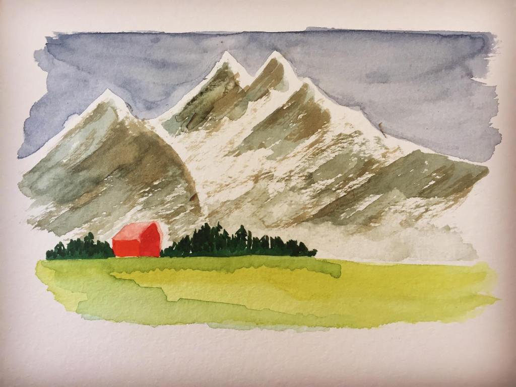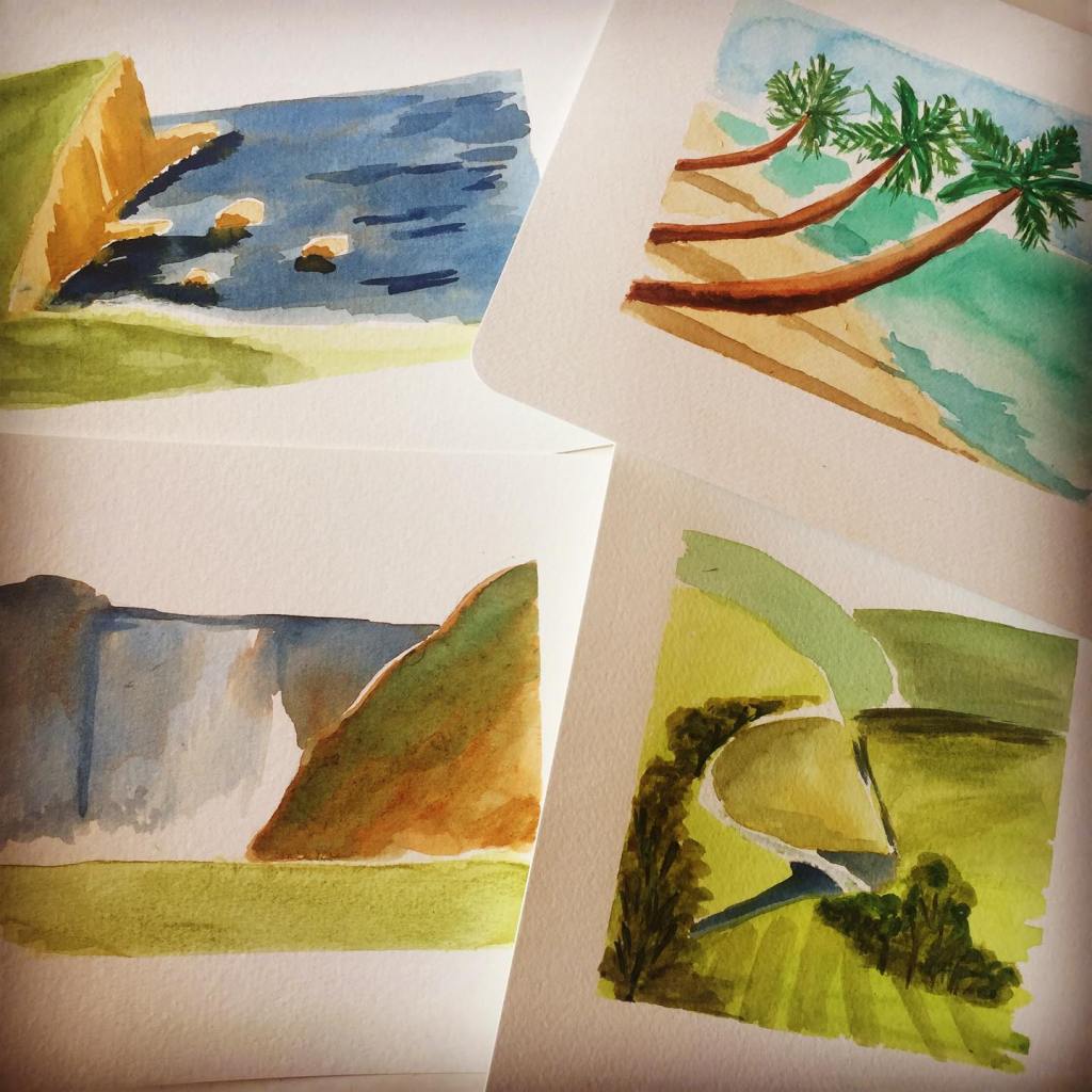 J’ai suivi la fin du stage de Marie pour faire des paysages en aquarelle. Je l’ai fait assez vite en mode rattrapage de mon séjour à Arras.