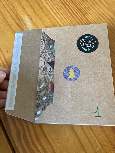 Je trouve géniale votre idée de calendrier de l’Avent avec une photo pour votre maman et avec les enveloppes reliées pour former un livre, c’est encore mieux.