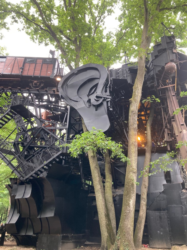 C’est complétement fou, ça ne sert à rien, ça fait du bruit « mécanique », des boules suivent un chemin en métal en traversant toute la sculpture. C’est plein de recoins, d’objets divers, de détails un peu fou.