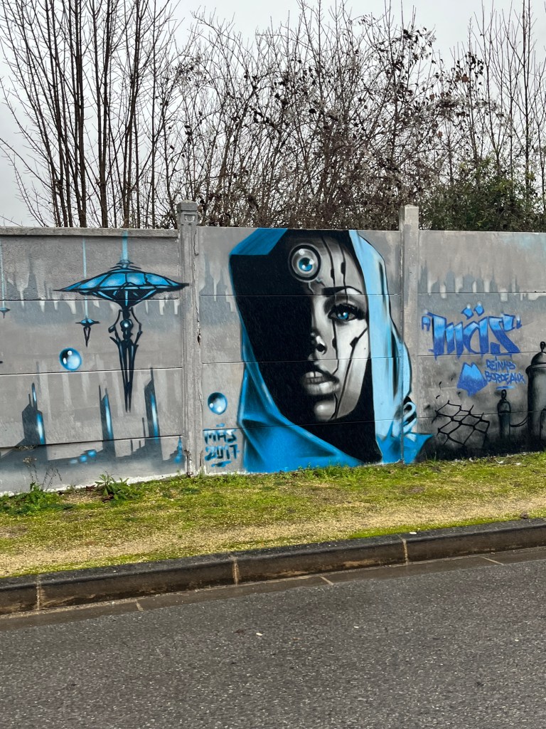 Et puis rue Philippe, nous avons vu la fresque géante de 400 m de long, street art sur l’industrie d’hier à aujourd’hui malheureusement il pleuvait.