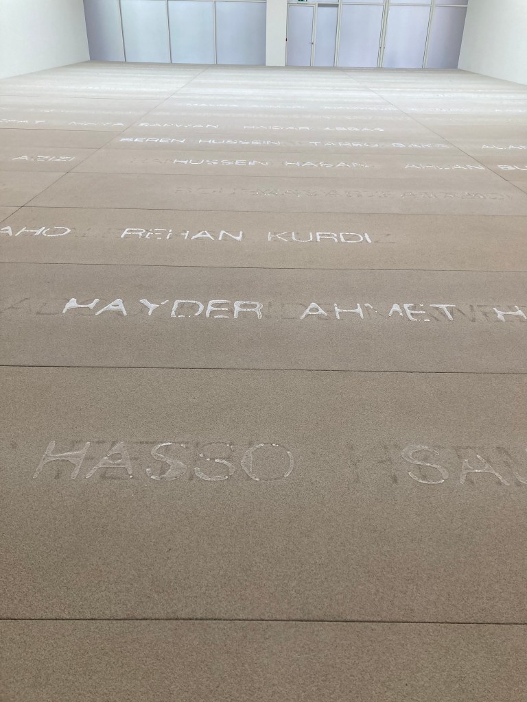Palimpsest est consacré aux réfugié·e·s et aux migrant·e·s mort·e·s ces vingt dernières années lors de la dangereuse traversée de la Méditerranée en quête d’une vie meilleure en Europe.
