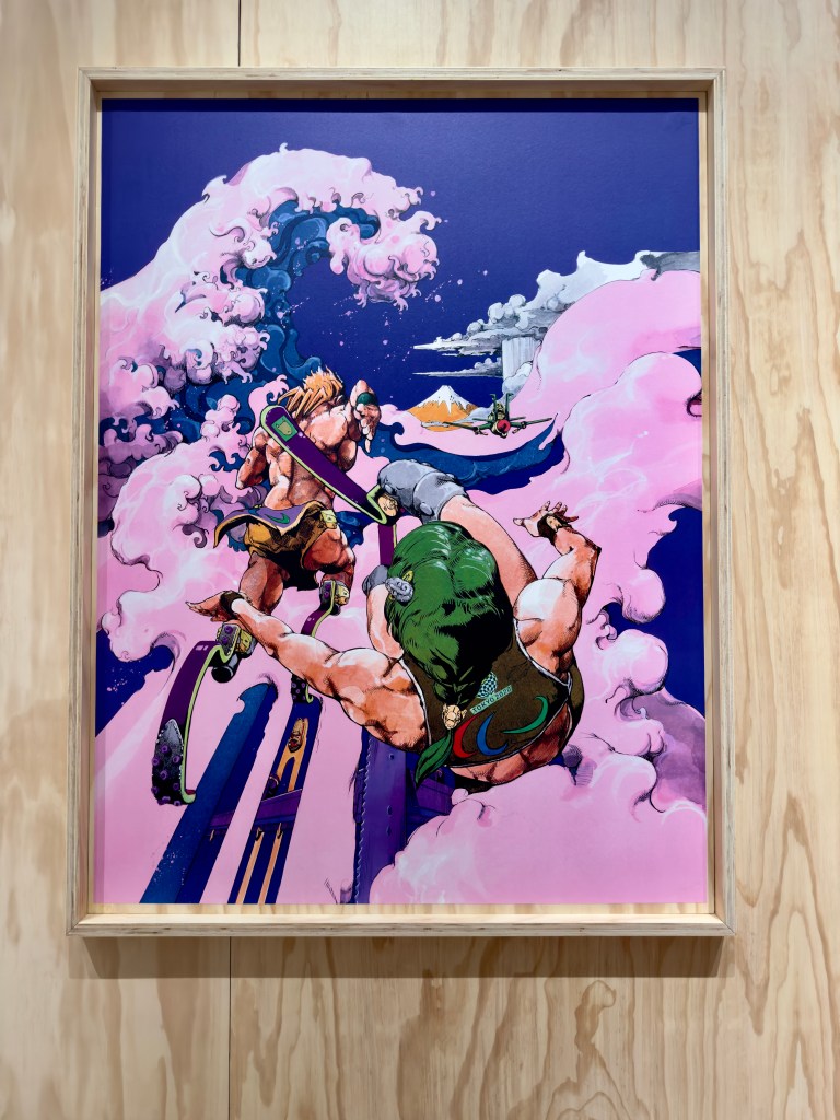 Affiche de Hirohiko Araki pour les Jeux paralympiques de 2020 de Tokyo fortement inspirée de la gravure de Hokusai. Les Dieux des sports paralympiques descendent sur Tokyo.