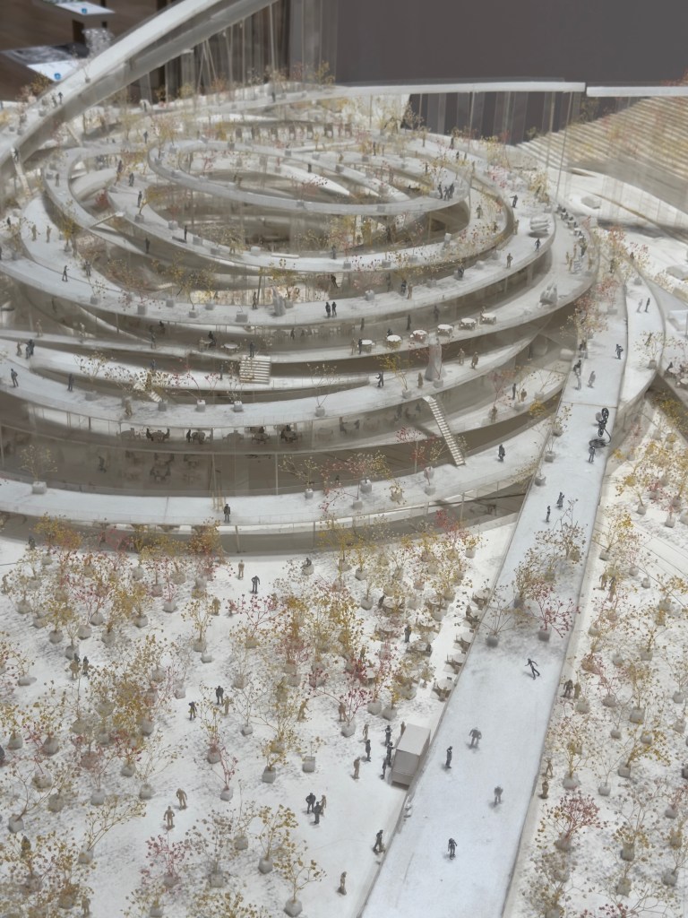 Nous visitons l’expo du Mori Art Museum au 53ème étage 😉 Elle est consacrée au travail de l’architecte japonais Sou Fujimoto. Son univers allie futurisme et nature. J’aime la légèreté qui se dégage des maquettes. Cela donne plein d’idée pour moi atelier du mardi 😉