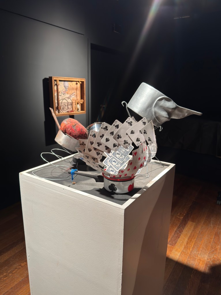 Le masque, la maquette d’architecture, au fond le trépied et à droite l’arbre…