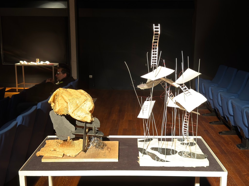 Ce sont les équipes du conservatoire qui ont imaginé la scénographie et elle est très réussie. L’expo est dans la salle de l’auditorium, c’est original une expo sur une scène.