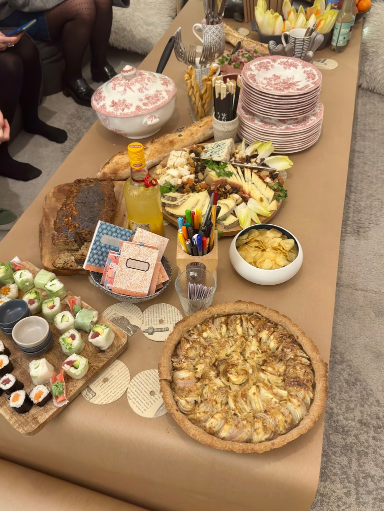 Nous sommes très bien reçu.e.s, une table buffet magnifique et des livres pour tout le monde.