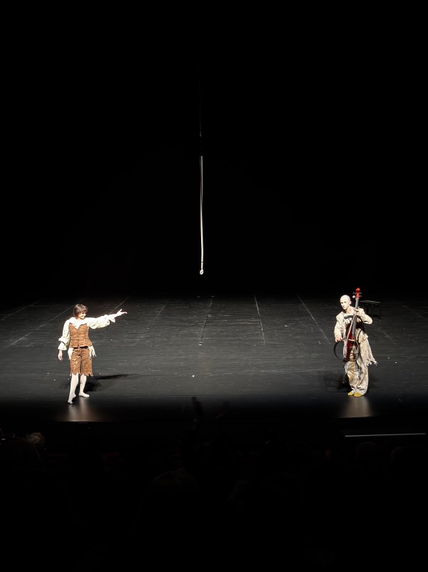 Out of Time de Victoria Bubnova et Ilia Osokin, duo circassien et musical en sangles aériennes. Acrobatie accrochée à une sangle accompagnée par du violoncelle. C’était très joli.