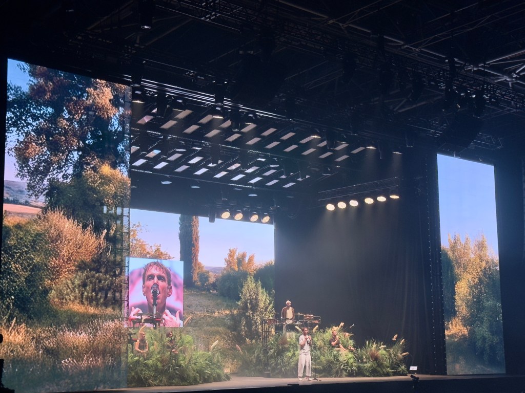 Il chante, danse, joue de la guitare ou du piano, plonge dans son décor tout en verdure, et nous trouble avec un rideau écran incroyable qui change le décor en quelques secondes…