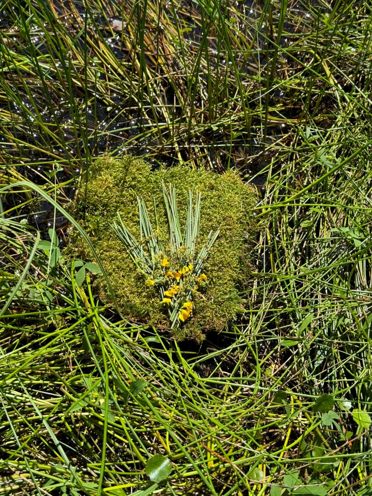 Nous étions 12 stagiaires, nous avons travaillé soit toutes ensemble, soit par groupe. L’alternance entre le Land art, le journal, les moments d’échange était très agréable et laissait place à notre propre créativité.