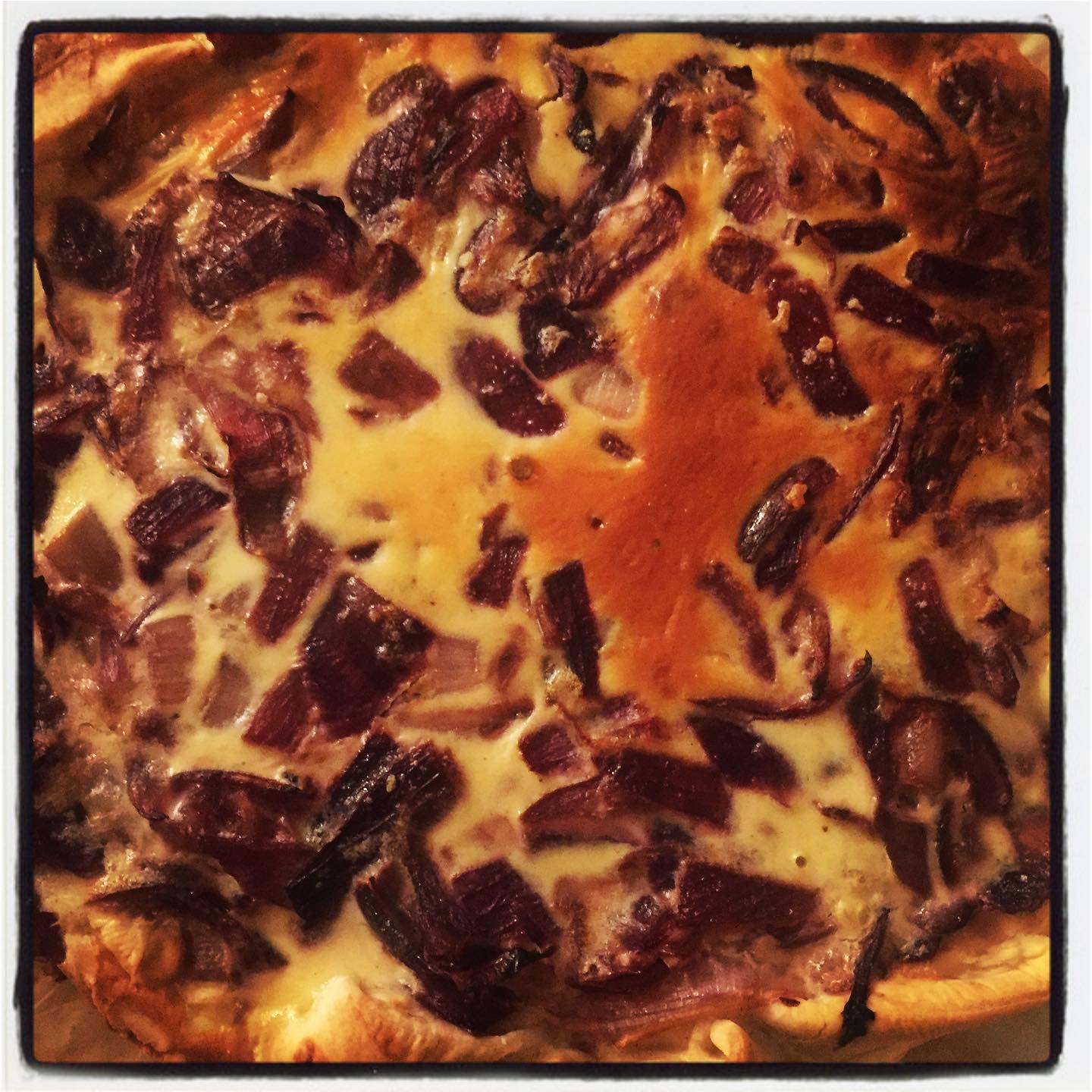 Etaler une pâte feuilletée sur un papier cuisson sur la polaque du four, mettre les légumes dessus, j’ai fait par 1 couche de chaque. Puis recouvrir de pâte feuilletée. Recouvrir de jaune d’oeuf et vous pouvez dessiner dessus.