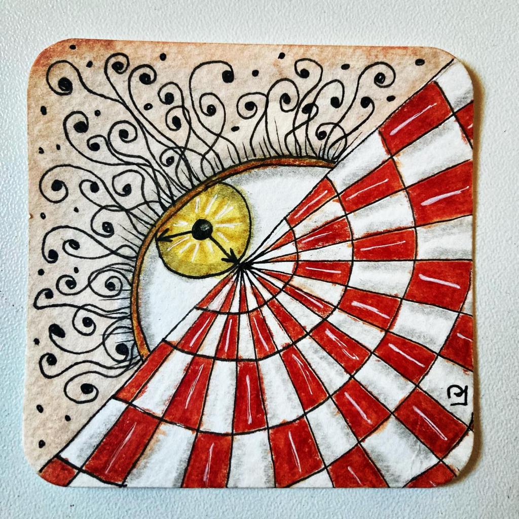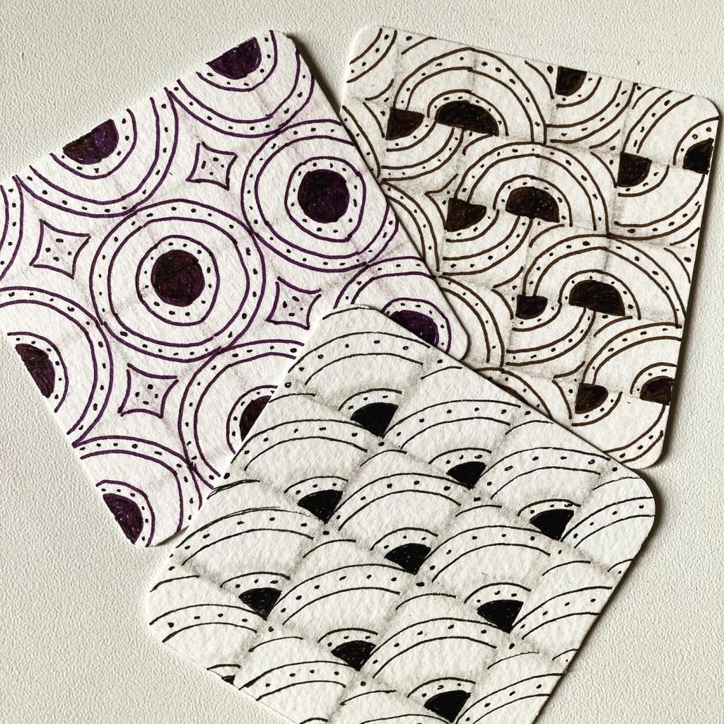 J’en ai profité pour tester mes nouvelles aquarelles, tout d’abord en recyclant des petits Zentangle