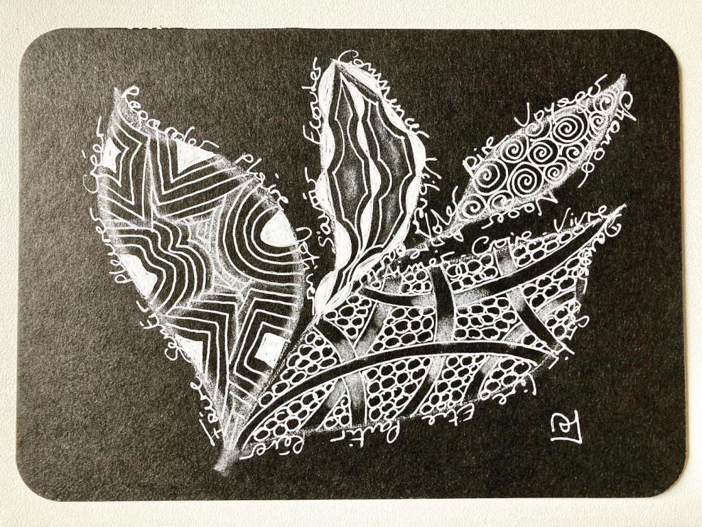 J’ai suivi également un atelier vidéo de Jijihook pour Zentangle débutant, un peu comme un retour aux sources pour moi. Ca fait du bien dessiner simplement…