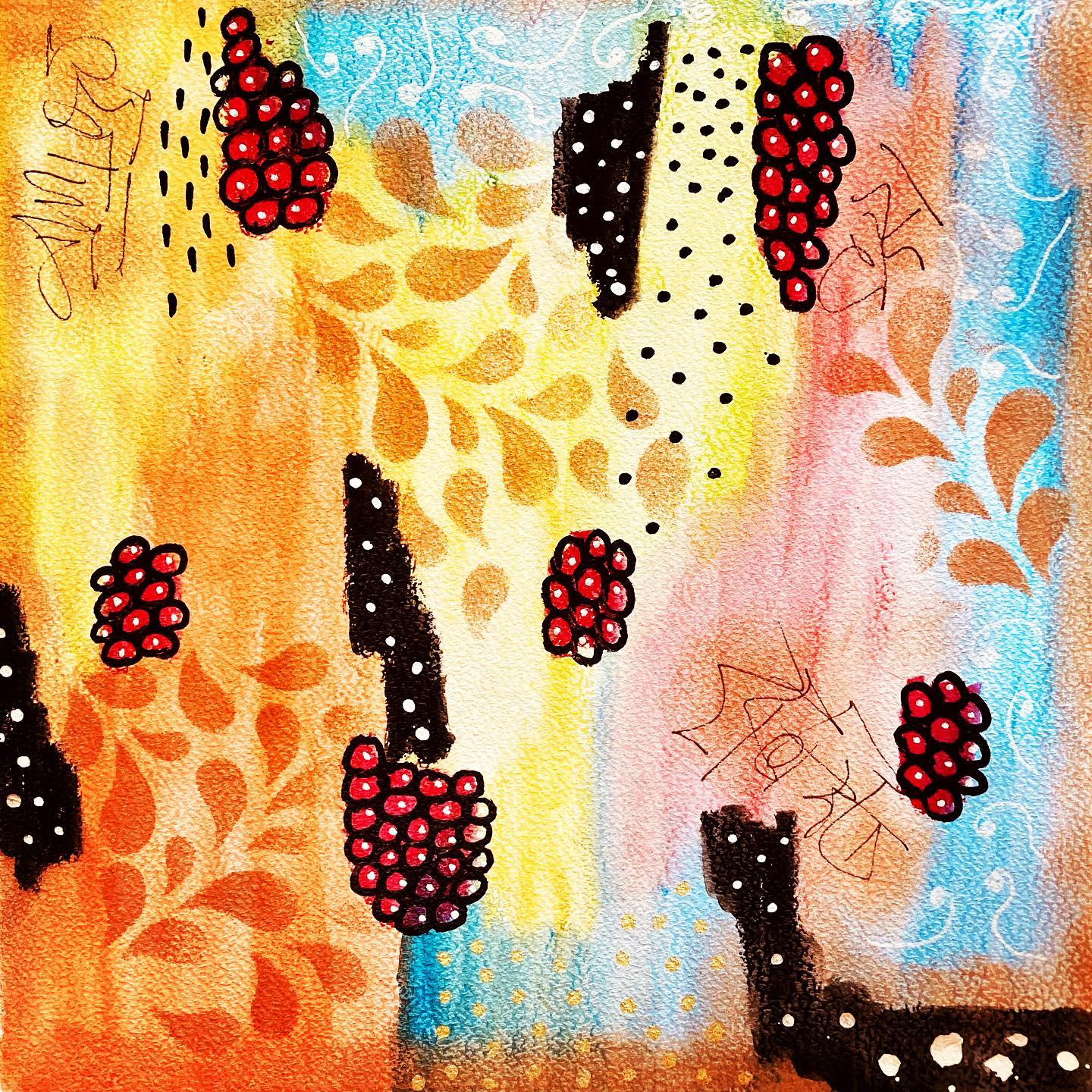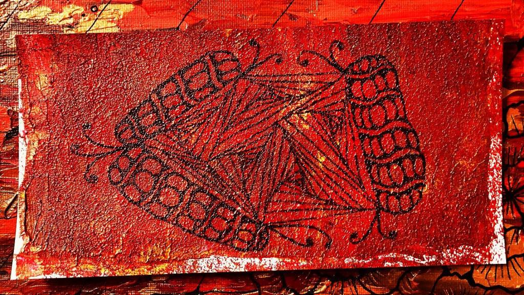 Sur des fonds que j’avais fait il y a quelques semaines j’ai fait un défi Zentangle de Jijihook et puis pour le second j’ai improvisé.