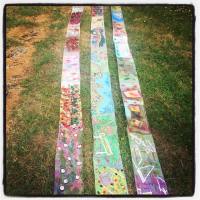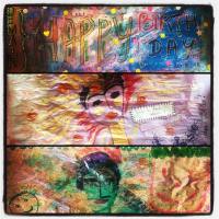 Ensuite j’ai fait des fond avec une plaque Gel Press… Pas si facile. Et ensuite j’ai dessiné sur les fonds.
