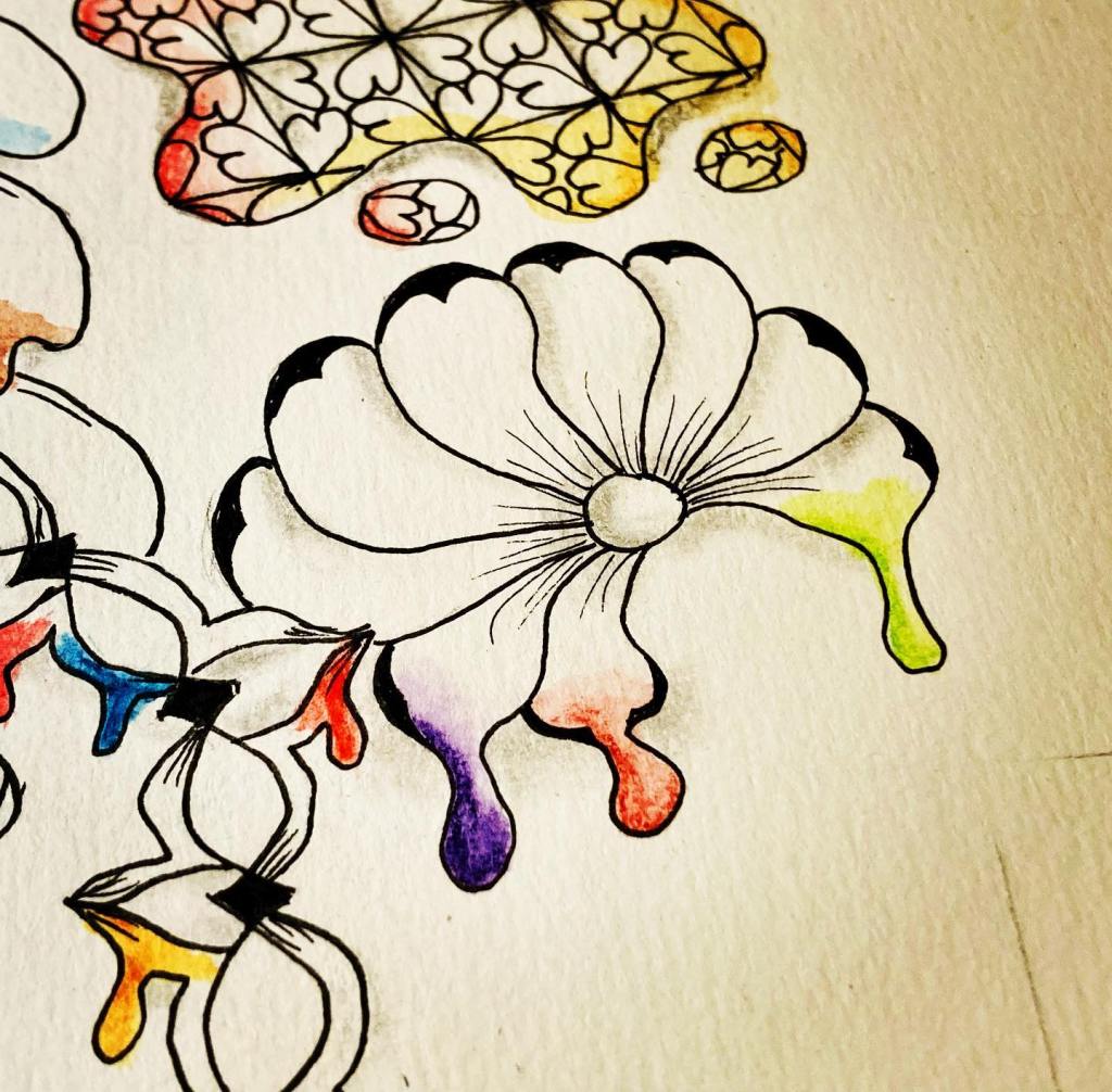 Je participe au défi #inktobertangles de To be tangled. C’est la même liste de tangles que le défi disons plus classique mais pour changer un peu on fait comme des coulures…