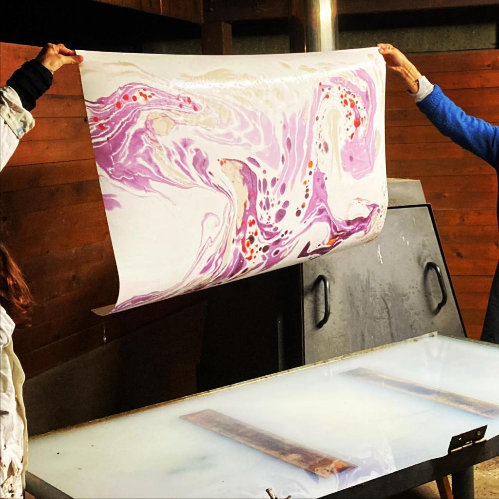 Mardi 7 # Jour 341 : Atelier du mardi. Sculpture en volume avec nos papier marbré.