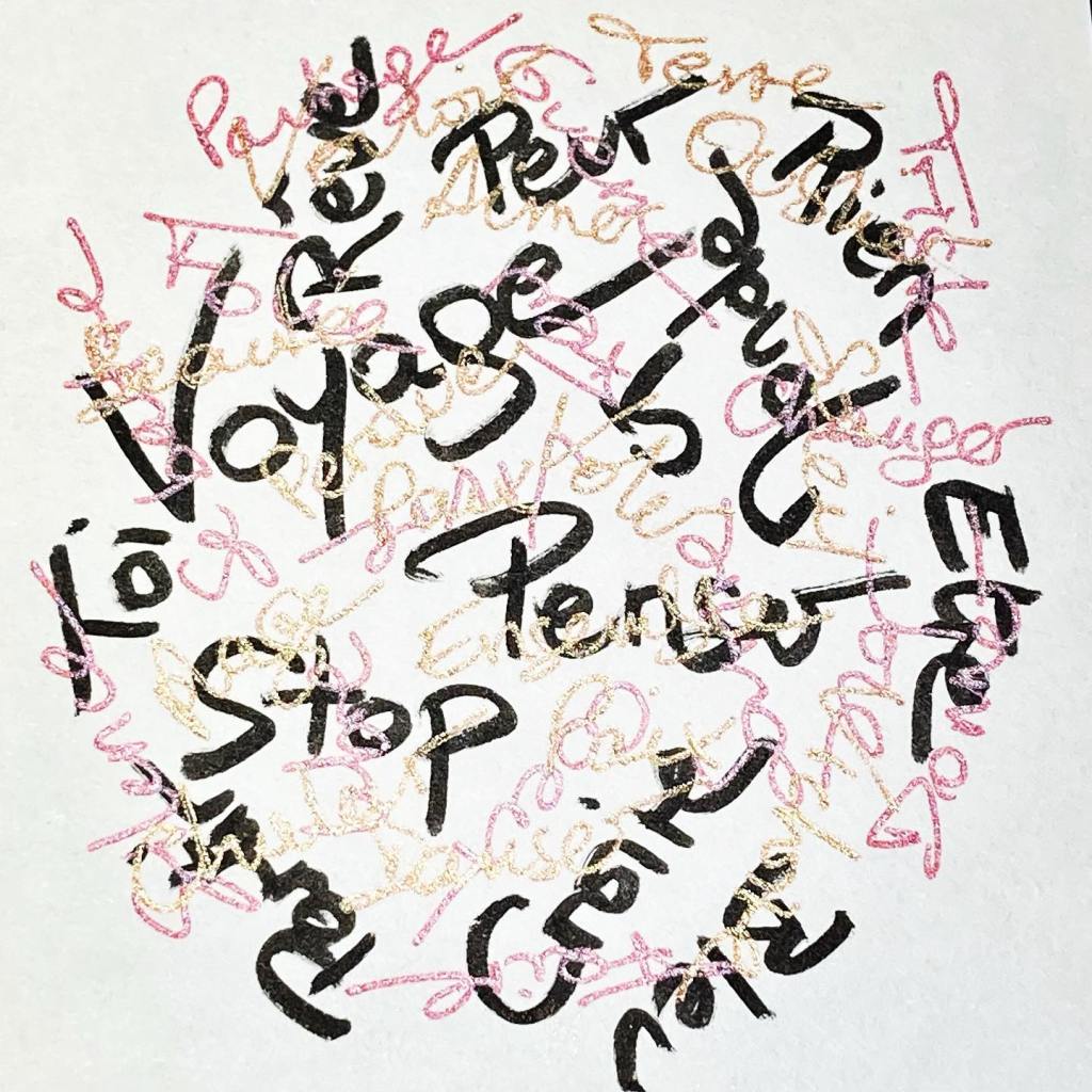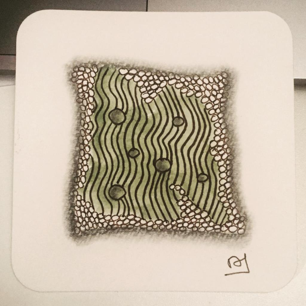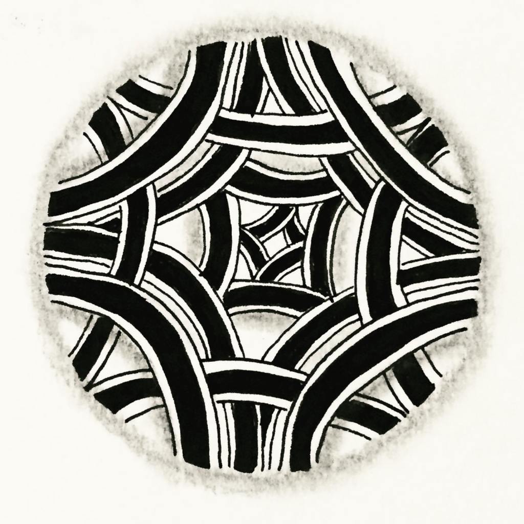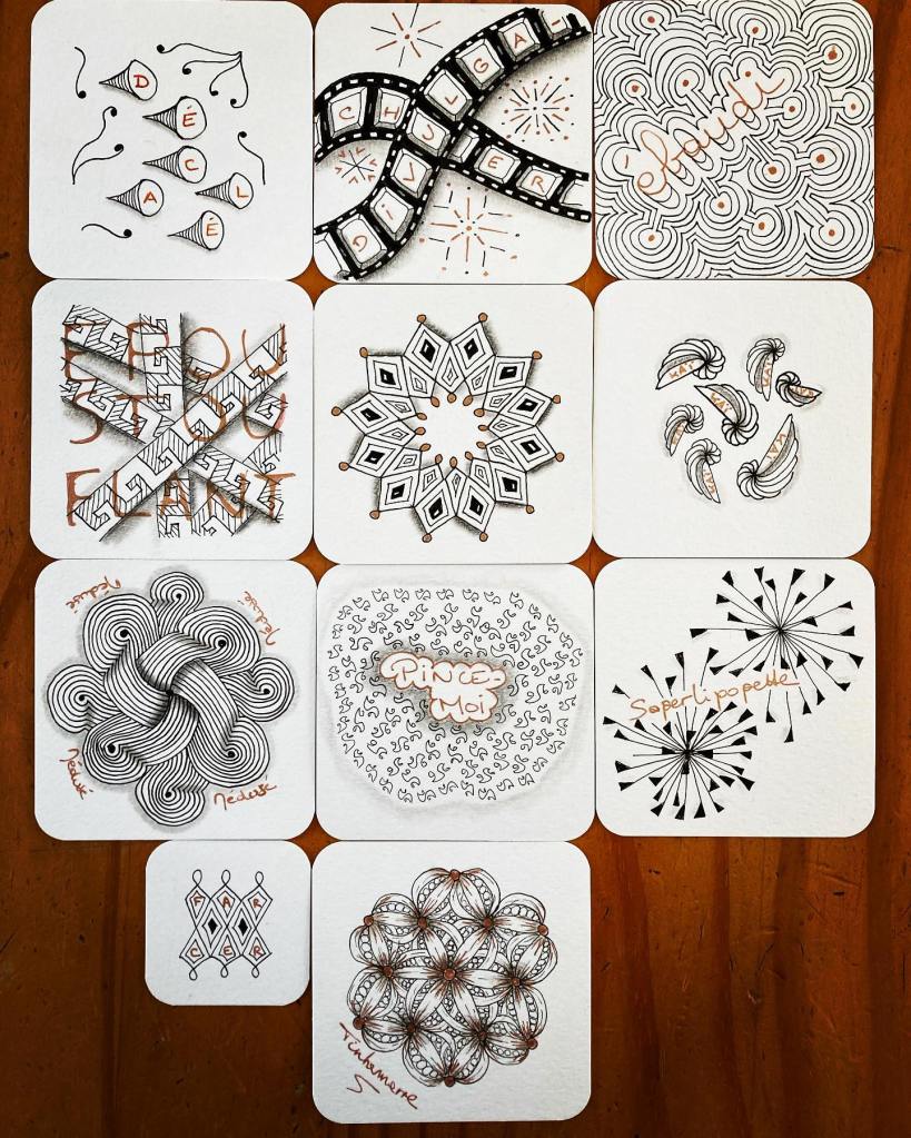 Et mon amie Monette a trouvé sur Insta un petit jeu de dessin comment dire, aléatoire ? Nous avons testé à 3 puis j’en ai fait un seule. Il faut se concentrer. J’y reviendrai plus tard, je reste dans mes zentangle pour le moment.