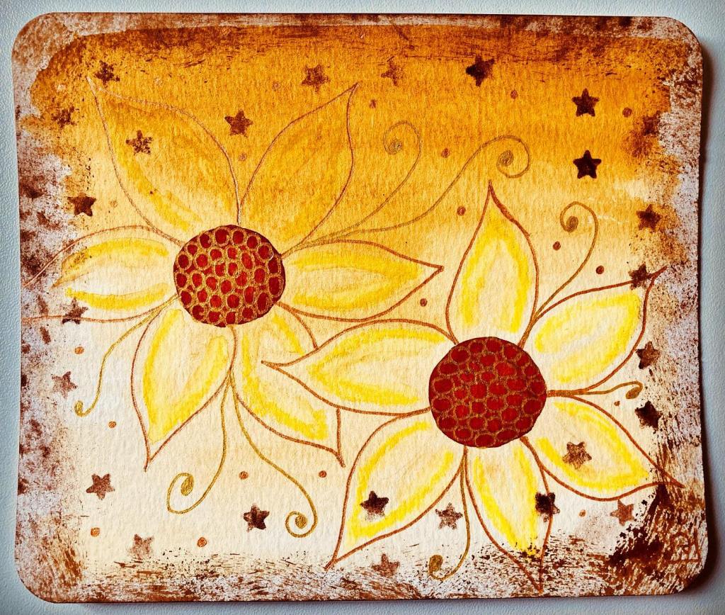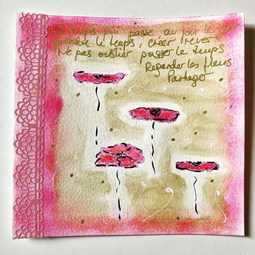 Je suis contente de moi, je remplis mon nouvel Art Journal et cela m’inspire pour faire des cartes, et puis peut être que je vais me relancer sur toile.