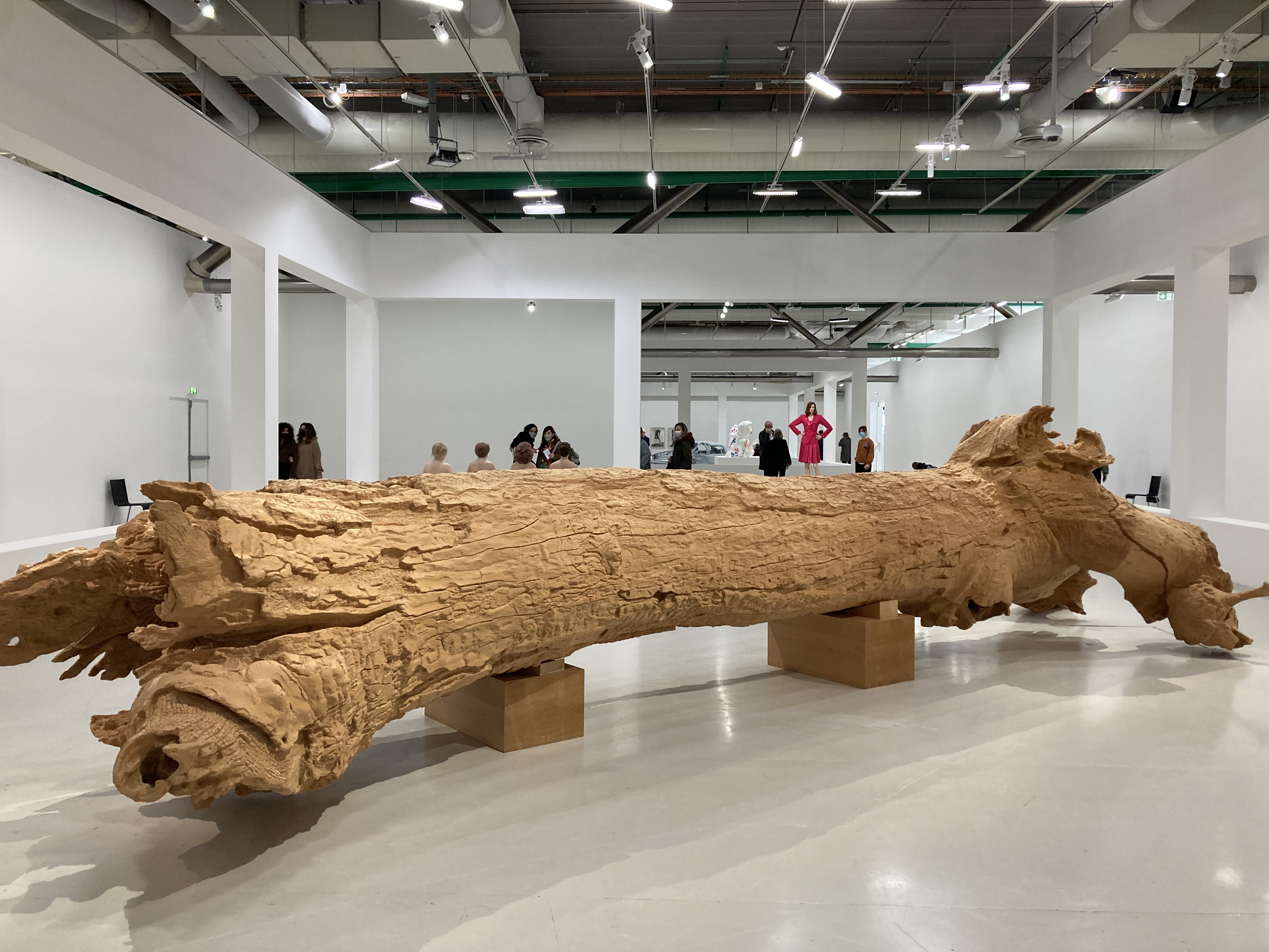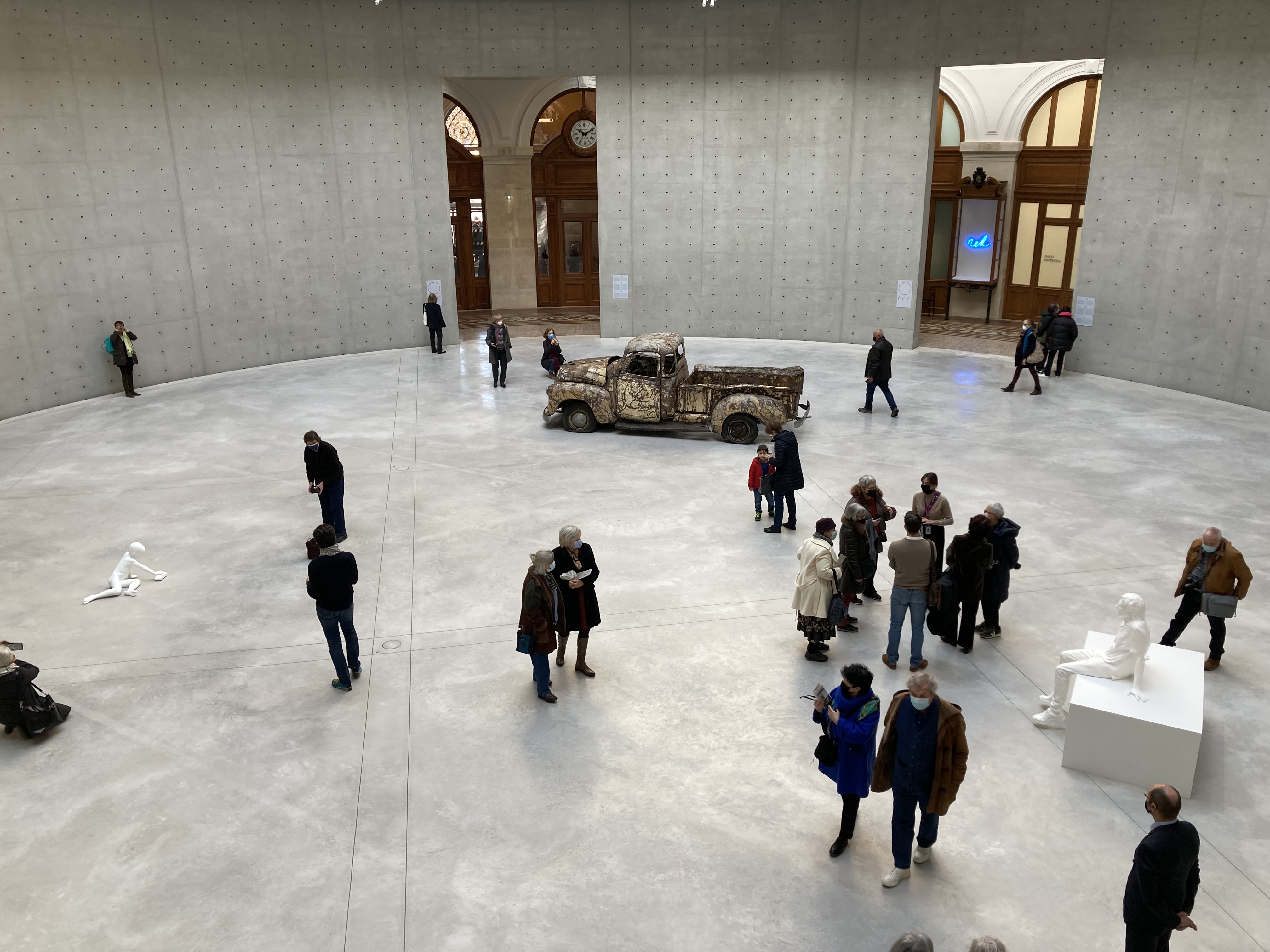 Le très beau bâtiment et une oeuvre de Giuseppe Penone devant.