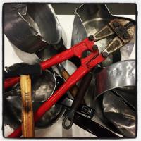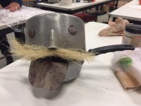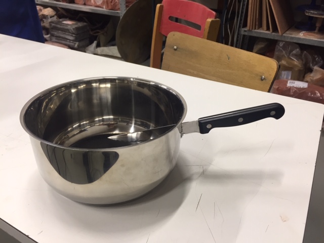 Sur cette base on doit composer une sculpture qui prendra en compte la forme de la casserole mais pas obligatoirement sa fonction. On peut procéder par ajouts ou soustractions, tous les matériaux sont les bienvenus.