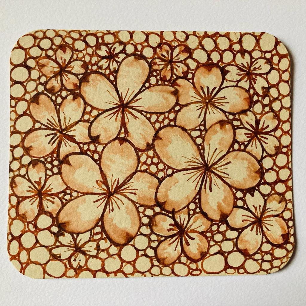 Je dessine sur la base des Zentangle, je fais de l’Art Journal et du ZIA, je peins des toiles, je participe à un atelier de sculpture contemporaine et j’ai testé tout un tas de pratique : mosaïque, papier mâché, Fimo, gravure, collage, broderie (il y a longtemps), création en laine cardée, vitrail, cyanotype, création de bijoux, création de cartes avec la Cricut, aquarelle… Et j’en oublie certainement.