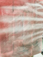 On travaille sur l’envers de la toile tendue sur un cadre, le dessin est reporté au crayon, puis c’est un peu comme du remplissage en coloriage.