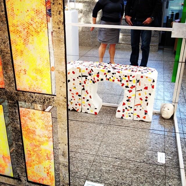 Mercredi 18 # Jour 169 : Beau succès pour le vernissage de l’expo des travaux des ateliers du conservatoire des Arts. Je suis trop fière de mon banc 😉